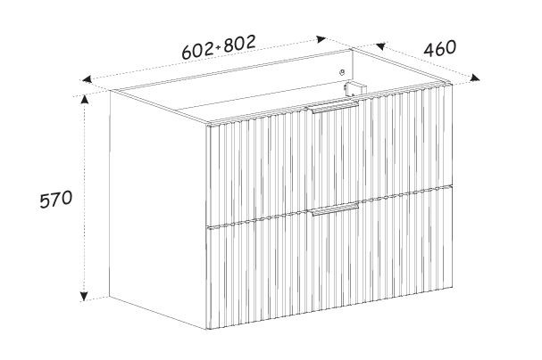 Skrinka pod umývadlo o rozmere 60 cm s dvoma zásuvkami z kolekcie Adel Black v sebe spája eleganciu s funkčnosťou. Vyznačuje sa klasickými proporciami tvarov a unikátnymi, drážkovanými čelami. Úchytky v troch farbách - zlatý lesk, chróm lesk a čierny mat - jej dodávajú štýlový vzhľad.