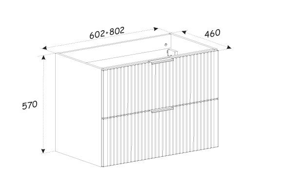 Táto 60cm umývadlová skrinka s dvoma zásuvkami z kolekcie Adel Cashmere kombinuje eleganciu s funkčnosťou. Vyznačuje sa klasickými proporciami a unikátnymi drážkovanými čelami . Úchytky v troch farbách – lesklé zlaté, lesklé chrómové a matné čierne – jej dodávajú štýlový vzhľad. Kašmír, najobľúbenejšia farba tejto sezóny, dodáva skrinke moderný vzhľad, ktorý sa bez problémov hodí do rôznych interiérových designov.