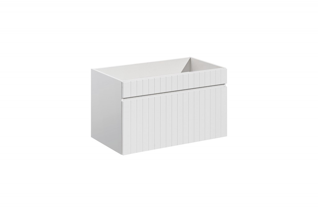 IKONICKÁ BIELA 82-80-D-1S je moderná umývadlová skrinka so šírkou 80 cm , vybavená jednou priestrannou zásuvkou, ktorá poskytuje praktický úložný priestor pre každodenné potreby v kúpeľni.