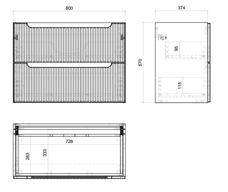- Rozmery: Šírka 80 cm, výška 57 cm, hĺbka 39 cm