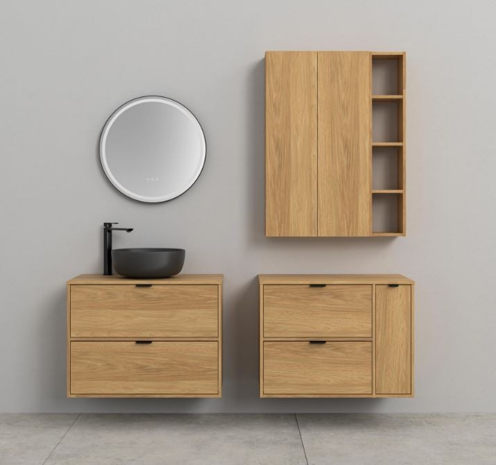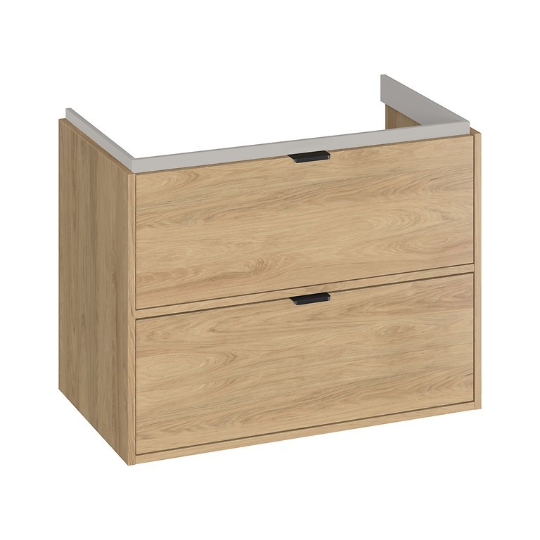 Skrinka pod umývadlo ATRATO 80 v dekore dub prináša do kúpeľne prírodný vzhľad a hrejivý charakter. Vďaka závesnému prevedeniu nezaberá miesto na podlahe a uľahčuje upratovanie. Dve priestranné zásuvky s plným dnom ponúkajú praktický úložný priestor pre každodenné potreby. Korpus aj čelá sú vyrobené z odolnej laminovanej drevotriesky. Skrinka je ideálna pre moderné aj klasické kúpeľne.