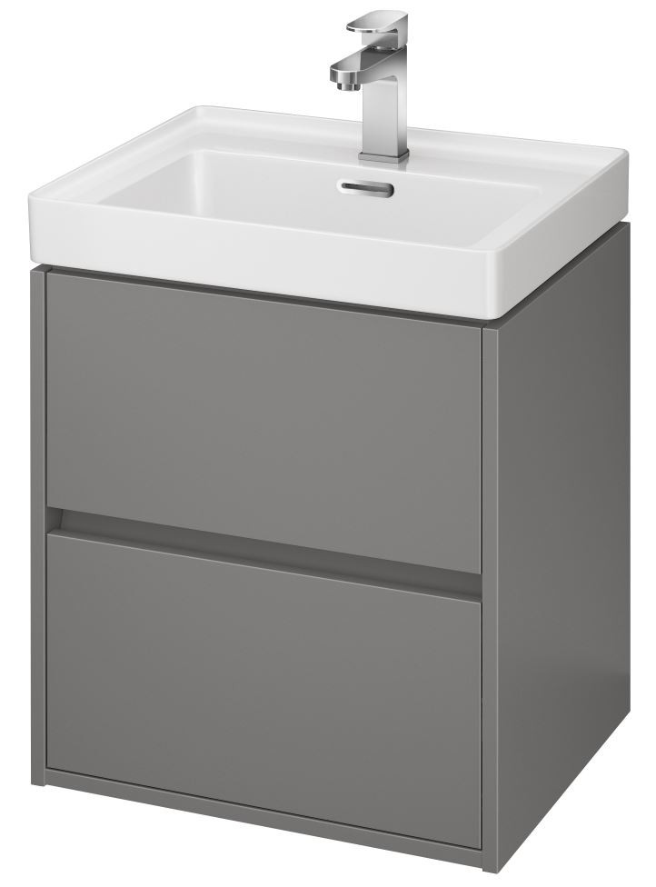Závesná umývadlová skrinka CREA 50 s dvoma výsuvnými boxmi v šedom matnom prevedení a elegantným šedým ľanovým vnútrom. Vyrobená je z drevotrieskových dosiek s modernou technológiou AQUASAFE /zvýšená odolnosť proti vlhkosti/. Skrinka pôsobí elegantným vzhľadom vďaka zapusteniu prednej časti a využitiu skrytých madiel. Zásuvky sú vybavené pojazdmi "HAFELE" s plným výsuvom a tichým uzatváracím systémom, ktorý zvyšuje komfort používania. Skrinka je možné kombinovať s umývadlami CREA, MODUO, CITY, COMO a COLOUR.