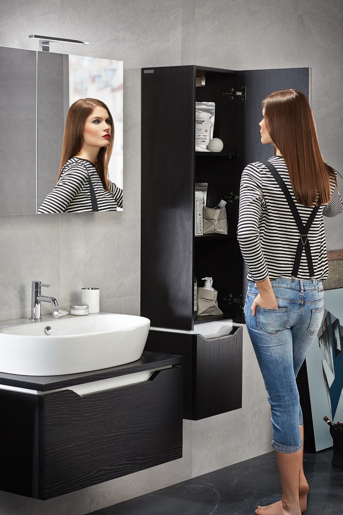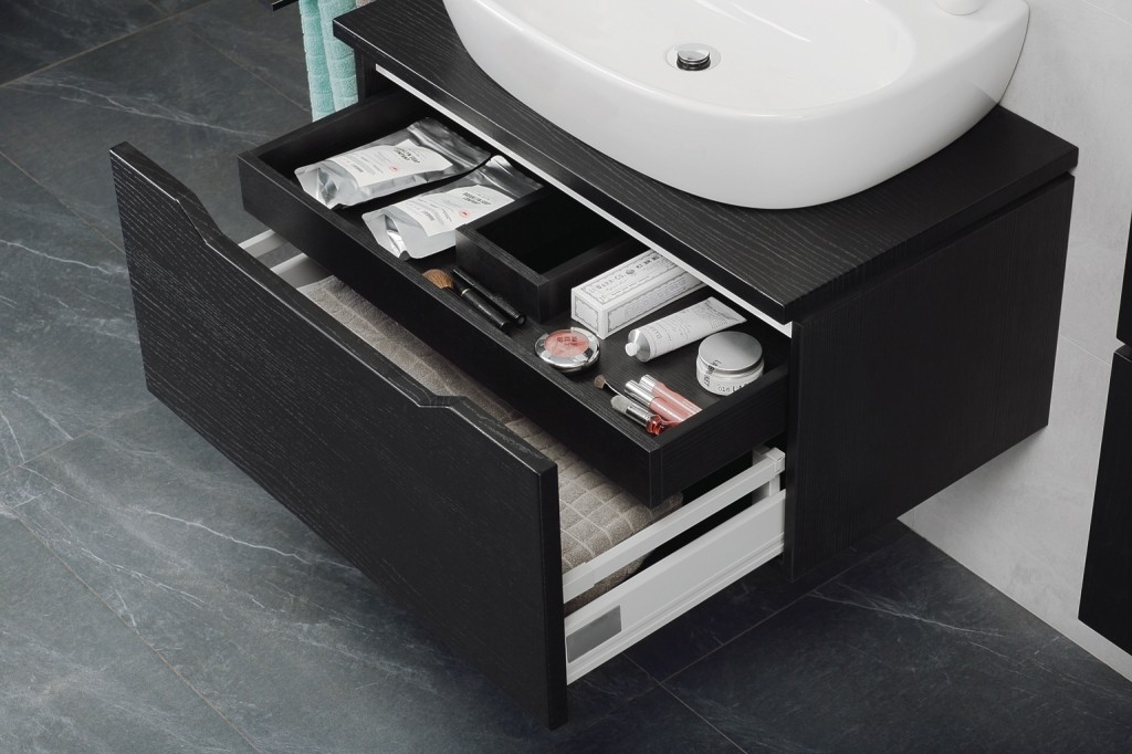 Závěsná umyvadlová skříňka STREET FUSION se zásuvkou v provedení hnědý dub.