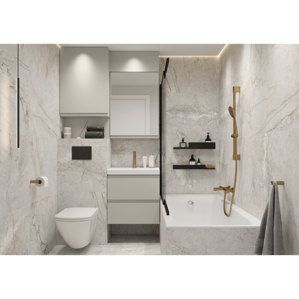Umývadlová skrinka MODUO s moderným, minimalistickým dizajnom je vyrobená z kašmírovo sfarbenej dosky s matnou povrchovou úpravou. Je vybavená pohodlnými frézovanými úchytkami a systémom tlmeného zatvárania. Skrinka je kompatibilná s nábytkovým umývadlom MODUO 80. Predáva sa ako samostatne montovateľná jednotka. Skrinka má dve plné zásuvky. Odporúčame použiť priestorovo úsporný sifón.