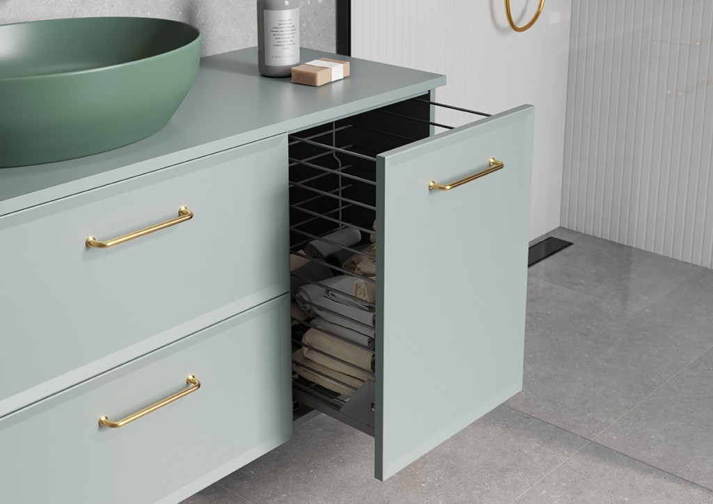 Kolekcia Mille je štýlová, funkčná a predovšetkým praktická , pretože okrem jednoduchého systému spájania prvkov ponúka nábytok a dokončovacie doplnky v mnohých farebných variantoch. Čelá nábytku sú vyrobené z MDF dosky a sú frézované, táto jednoduchá forma bez zbytočných zákutí umožňuje ľahké čistenie. Nábytok Mille je k dispozícii v troch farbách na výber: matná biela, matná čierna a fjord /matná zelená/. Rafinované detaily, ako sú úchyty a nohy v striebornej, čiernej a zlatej farbe. Pracovné dosky sú k dispozícii v troch farbách : matná biela, matná čierna, fjord /matná zelená/ av štyroch veľkostiach : 60, 80, 100, 120 cm. Okrem radu skriniek prispôsobených k nábytkovým umývadlám , tak umývadlám na dosku ponúka kolekcia rôzne typy prídavných skriniek pod dosku . V ponuke sú navyše nábytkové stĺpiky , ktoré dokonale uľahčia organizáciu priestoru v každej kúpeľni. Všetky skrine sú vybavené systémom mäkkého zatvárania.