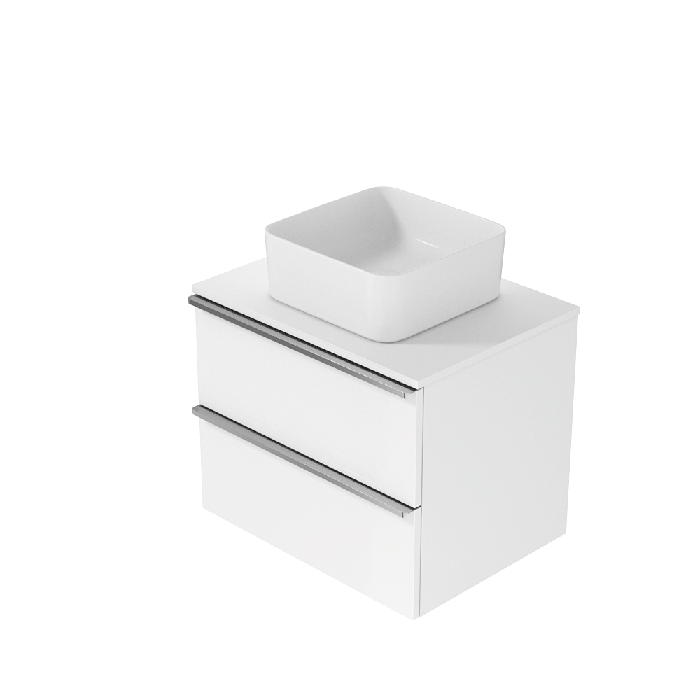 Závesná elegantný skrinka VIRGO pre umývadlá na dosku je vyrobená z bielej lakovanej drevotrieskovej dosky s lesklým povrchom. Dve praktické zásuvky sú vybavené systémom "soft-close". Vo vnútri hornej zásuvky je výrez pre sifón s krytom a spodnej časti zásuviek sú pokryté jemnou šedou ľanovou štruktúrou.