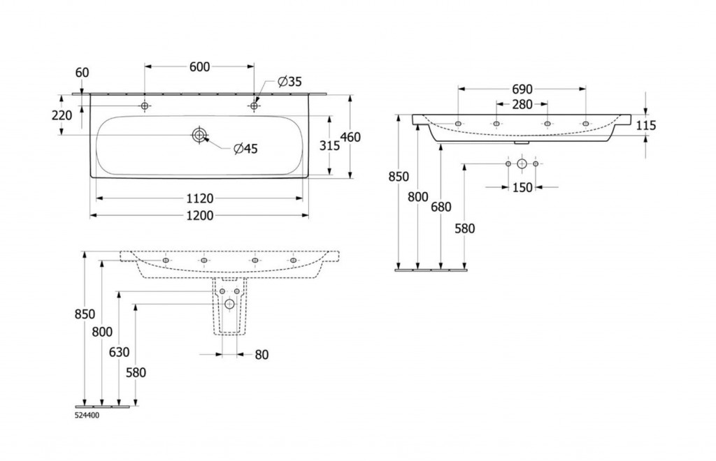 Dvojumývadlo bez prepadu