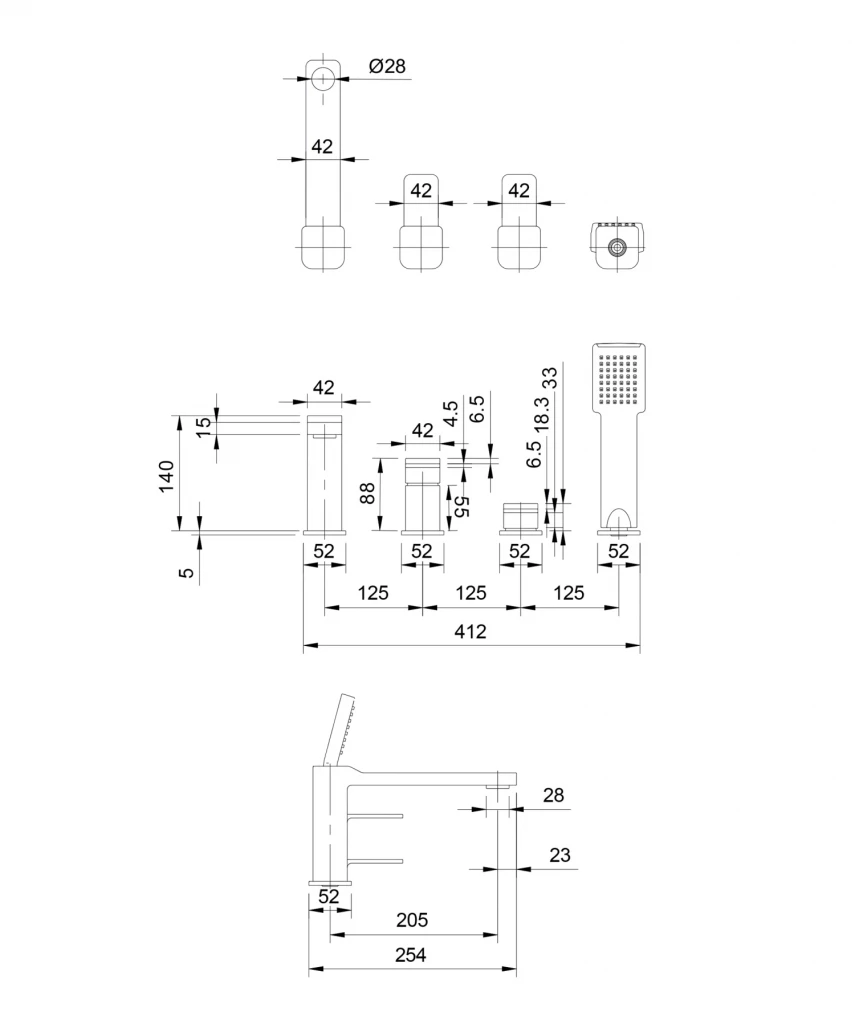 - sprchová hadica v oceľovom plášti, dĺžka: 150 cm