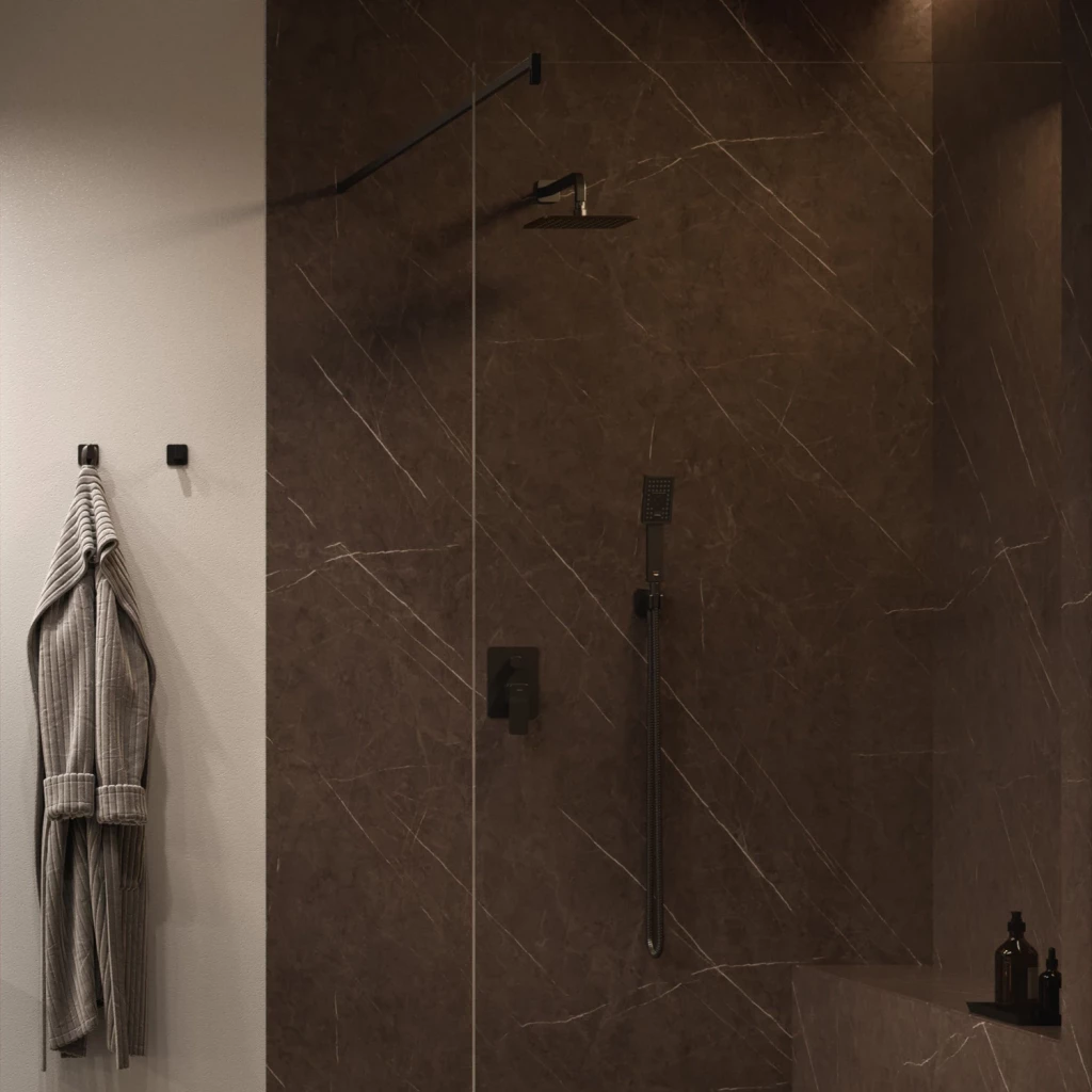 V mosadznej sprchovej hlavici OMNIRES SLIMLINE je komora obložená gumovým plášťom, vďaka čomu je sprchová hlavica odolnejšia voči poškodeniu.