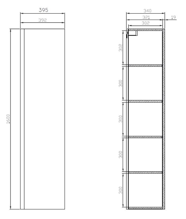 Závesný nábytkový stĺpik v šedom lesklom prevedení pre ukladanie kúpeľňových doplnkov. Elegantná nábytkový stĺpik má vyfrézovaný úchyt po celej dĺžke, dvierka má opatrená pánty s tichým dovieraním, vďaka ktorým je možné dvere otvoriť o 165 ° a možno tak pohodlne využiť zrkadla umiestneného po celej ploche vnútornej časti dvierok.