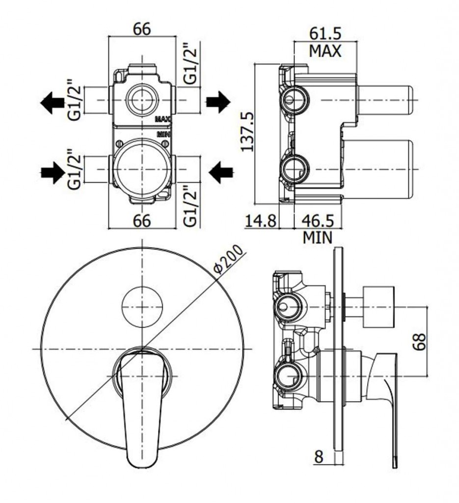 - všetky pripojenia vody G 1/2"