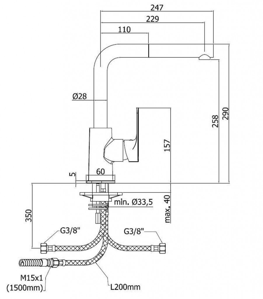 Kuchynská drezová stojanková páková batéria s vyťahovacou sprškou