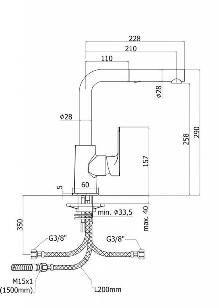 - dĺžka ramienka 210 mm, komfortná zóna 258 mm