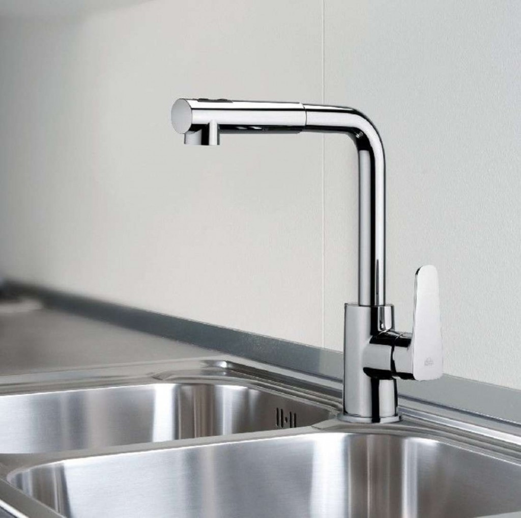 Kuchynská drezová stojanková páková batéria s vyťahovacou sprškou s dvoma prúdmi