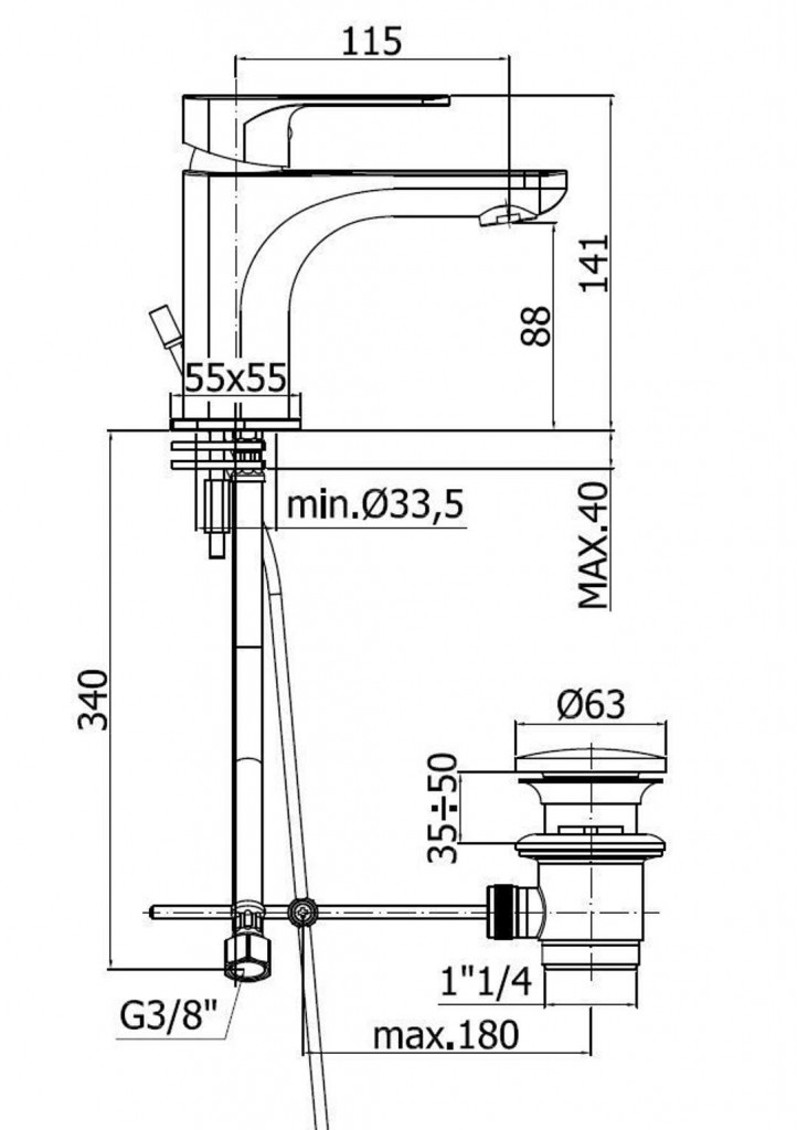 - dĺžka výtoku 115 mm, komfortná zóna 88 mm