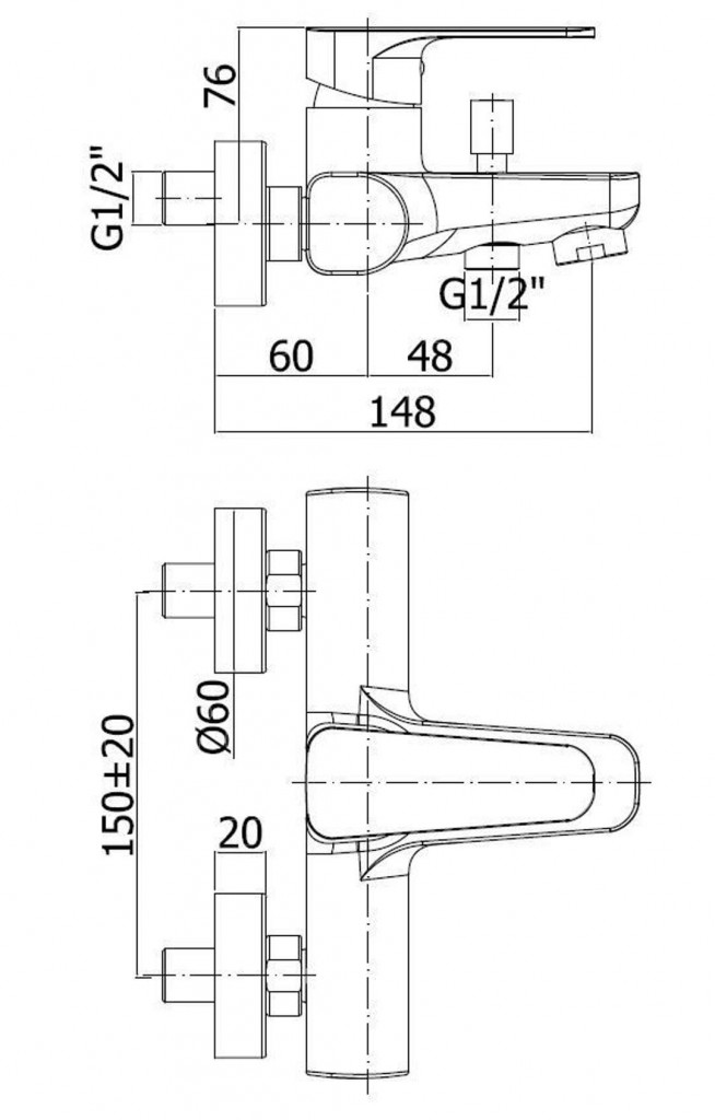 Vaňová nástenná páková batéria bez sprchového príslušenstva