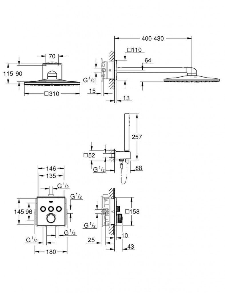 - Rainshower 310 hlavová sprcha hranatá set (26479) 2 sprchové prúdy, horizontálne sprchové rameno 430mm