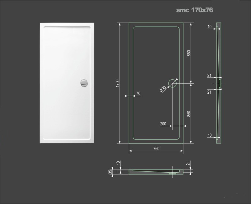 - výška vaničky obyčajné 3,5cm pre čistý dizajn vo Vašej kúpeľni pri umiestnení na podlahu