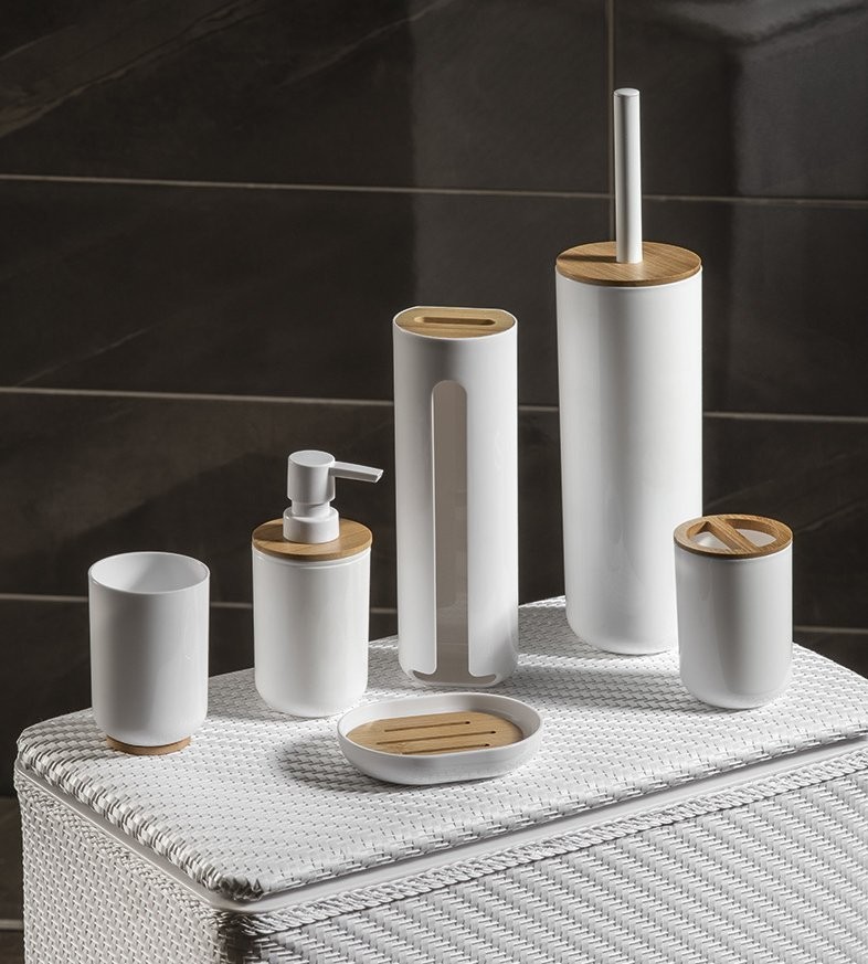 Séria SNOW ponúka jednoduchý prírodný dizajn. Skvele doplní policové regály z bambusového dreva a ďalšie drobné vybavenie z bambusu ako je štýlový zásobník na papierové vreckovky, stojan kombinujúci držiak toaletného papiera s WC štetkou alebo sušiak uterákov k opretie o stenu z našej ponuky zo série BAMBUS.
