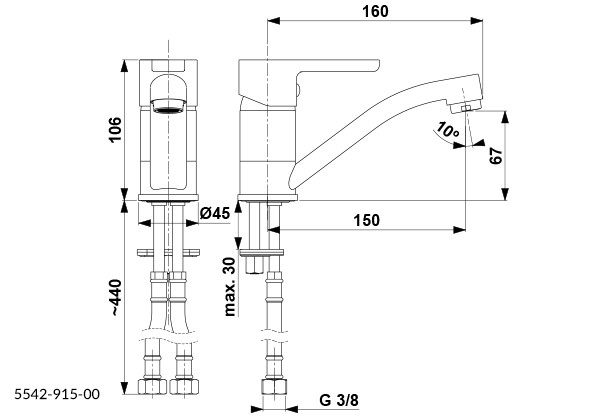 Všetko, čo budete potrebovať na jej spoľahlivú prevádzku. Teda: batéria umývadlová, upevňovacia sada s tesnením, flexibilné pripojenie M10x1/ G3/ 8" (L = 350 mm, 2 ks)