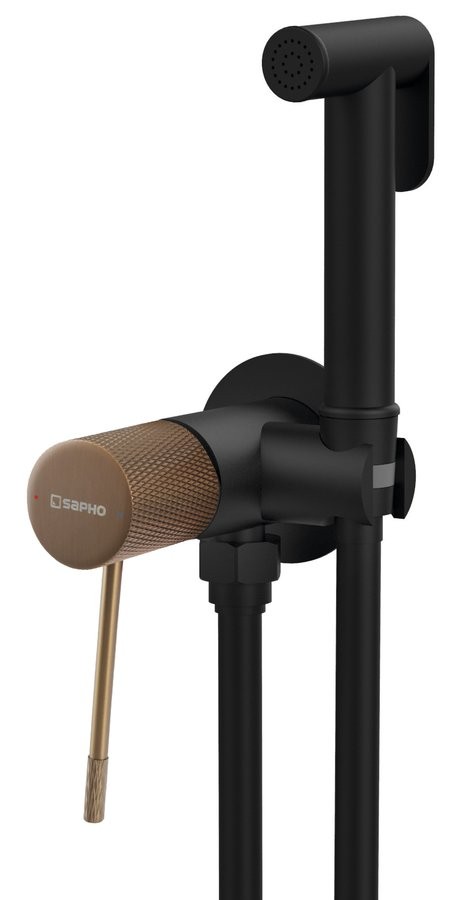 SAPHO - SOLARIS podomietková bidetová batéria so Stop sprškou, guľaty, čierna/meď mat (WD040PG)