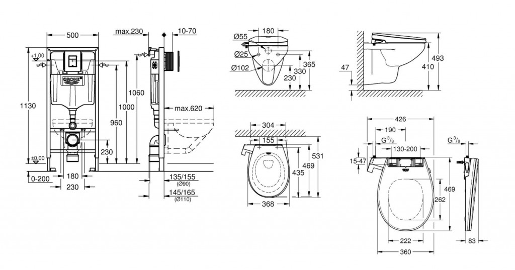 - WC keramika s plochou menšou ako 205 mm vyžaduje dodatočné príslušenstvo