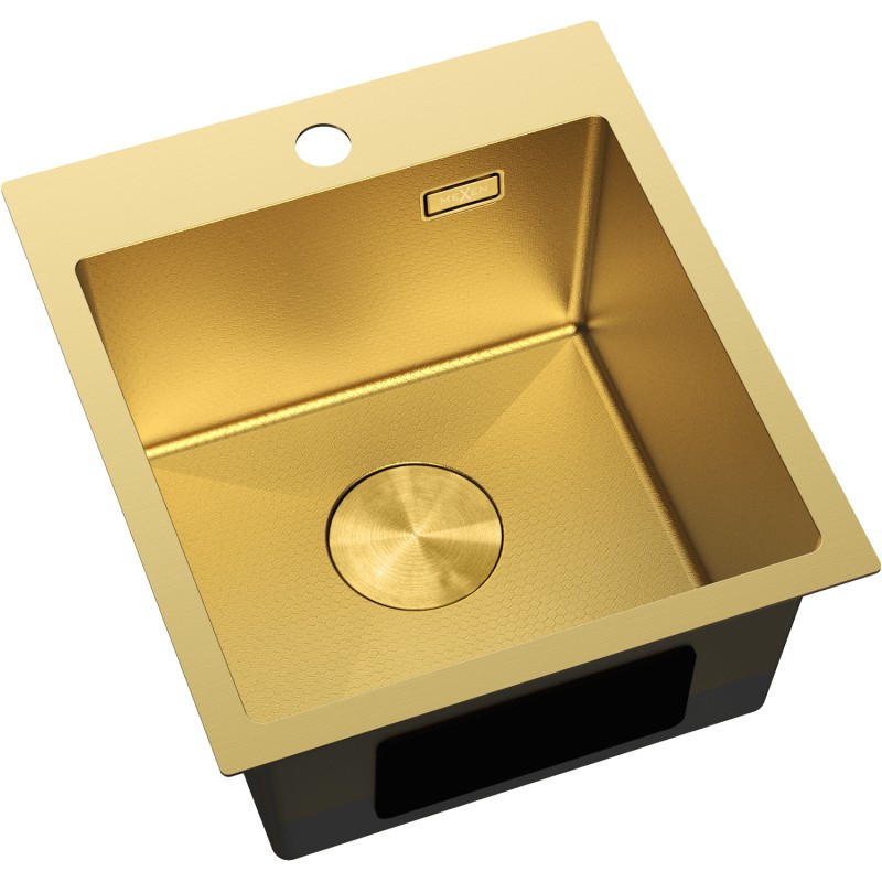 Špecifikácia produktu: Rozmer: 400x450x200 mm Hĺbka drezu: 200 mm Rozmery drezu: 350x350 mm Hrúbka oceľového hrán drezu: 3 mm Hrúbka oceľového hrán drezu: 1 mm Polomer zaoblenia rohov drezu: Typ1-2 Materiál: Nerezová oceľ AISI 304 Farba: Zlatá Povrch: Voština Povrchová úprava sifónu: Zlatá Otvor pre prepad: Áno Otvor pre batériu: Áno Ručný sifón s odpadkovým košom a zátkou Prídavný kryt odtoku Skrytý otvor pre prepad Zvukovo izolačné rohože k drezu Odolnosť voči vysokým teplotám a tepelným šokom Ľahko čistiteľný povrch