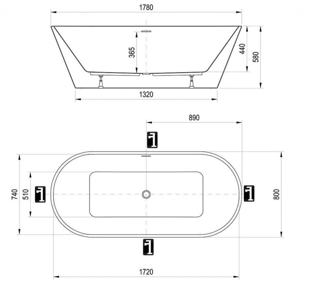 - vaňová odtoková súprava (prepad, výpust, sifón, zápachová uzávera) je súčasťou balenia
