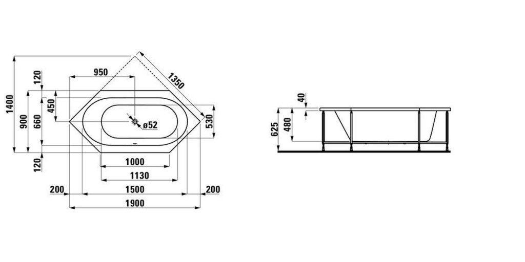 Šesťuholníková vaňa s hliníkovou konštrukciou, vstavaná verzia