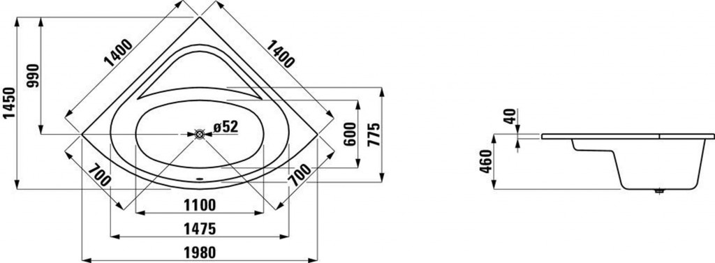 Rohová vaňa, vstavaná verzia