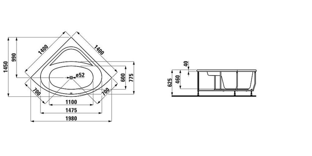 - odpad uprostred, Ø 52 mm