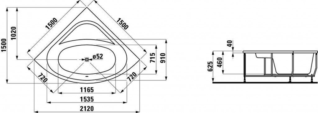 Rohová vaňa s hliníkovou konštrukciou, vstavaná verzia