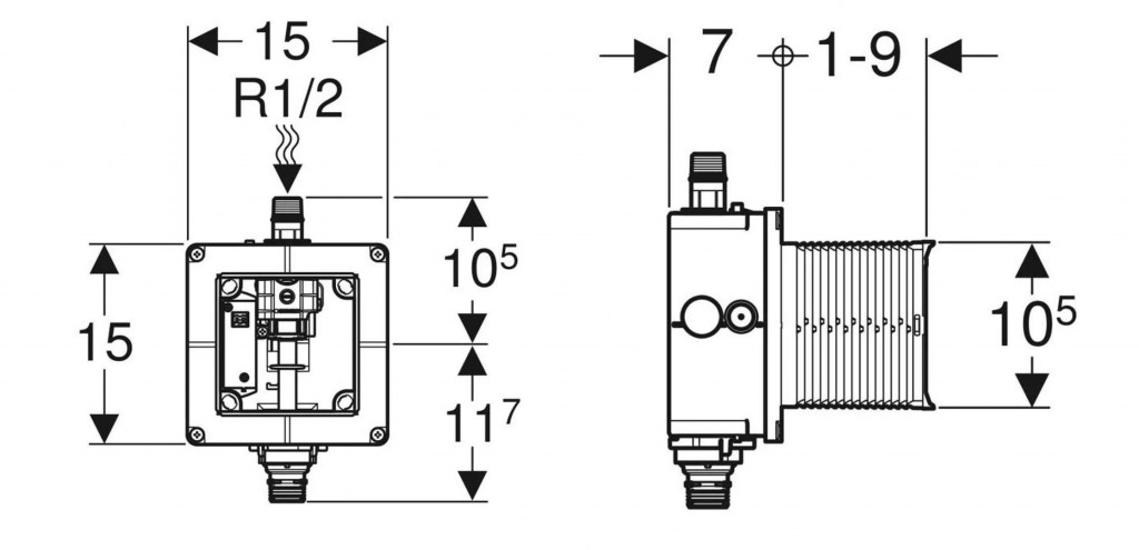 Súprava pre hrubú montáž Geberit so spojkou z mosadze, pre univerzálne ovládanie splachovania pisoárov