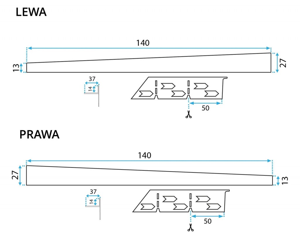 Spádové lišty sú dostupné v pravom alebo ľavom prevedení . Aké prevedenie potrebujete spoznáte pokiaľ stojíte pri sprchovacom kúte a pozeráte sa v smere spádu ku kanáliku, tak ak potrebujete profil na ľavú stranu, je to ľavý, ak na pravú stranu, je to pravý.