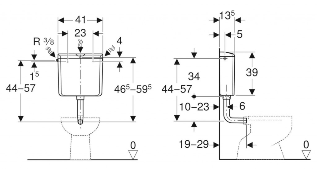 - splachovacie množstvo, nastavenie vo výrobe 9 l (rozsah nastavenia: 6/9 l)