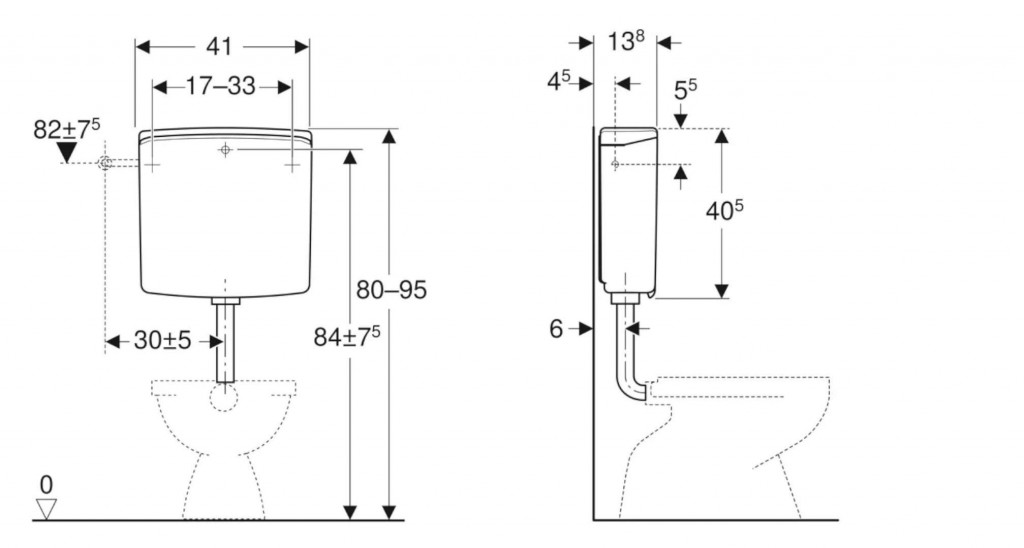 - splachovacie množstvo, nastavenie vo výrobe: 6 a 3 l