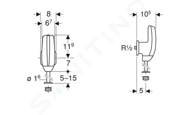 Ovládanie splachovanie pisoárov Geberit s elektronickým ovládaním splachovania, napájanie z batérie, zadné prívod vody