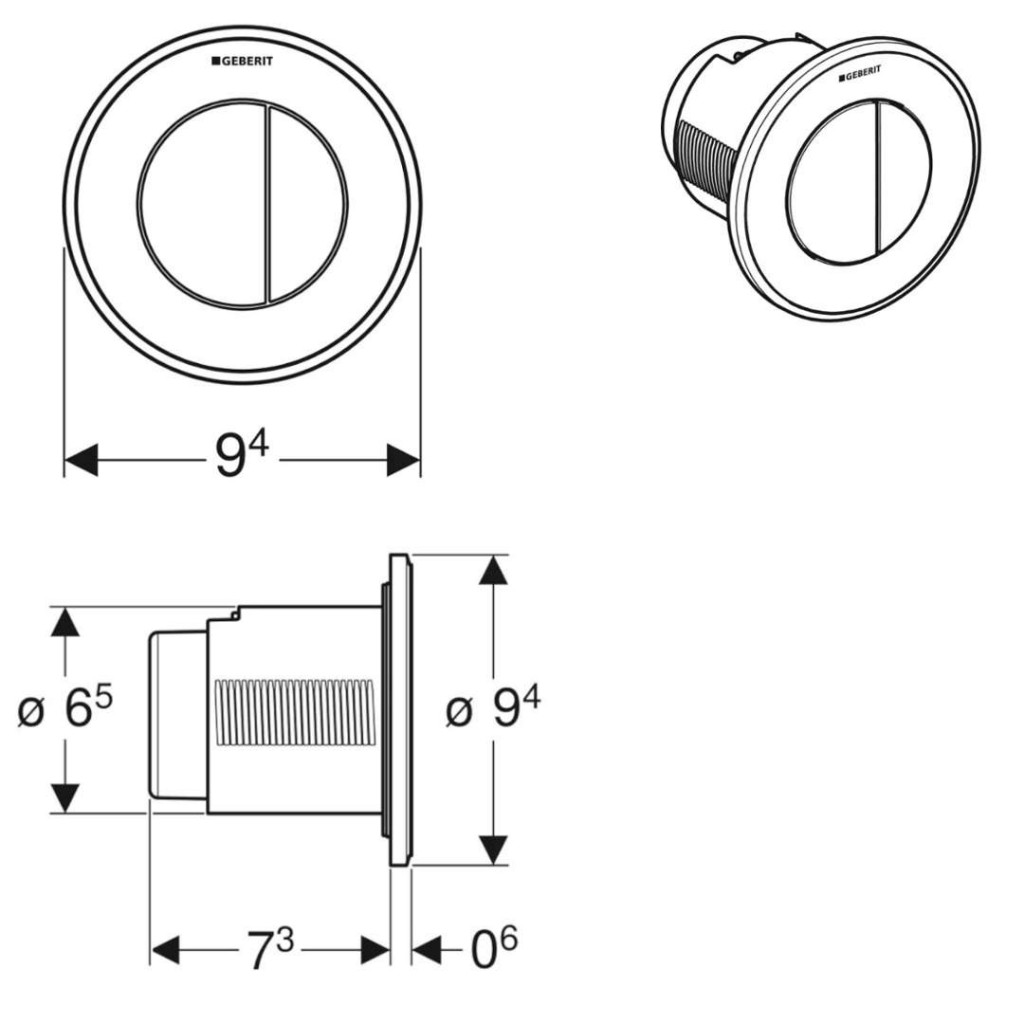 - kombinovateľný s ovládacími tlačidlami Geberit pre 1 množstvo splachovania a splachovania Štart/Stop alebo krycou doskou Geberit