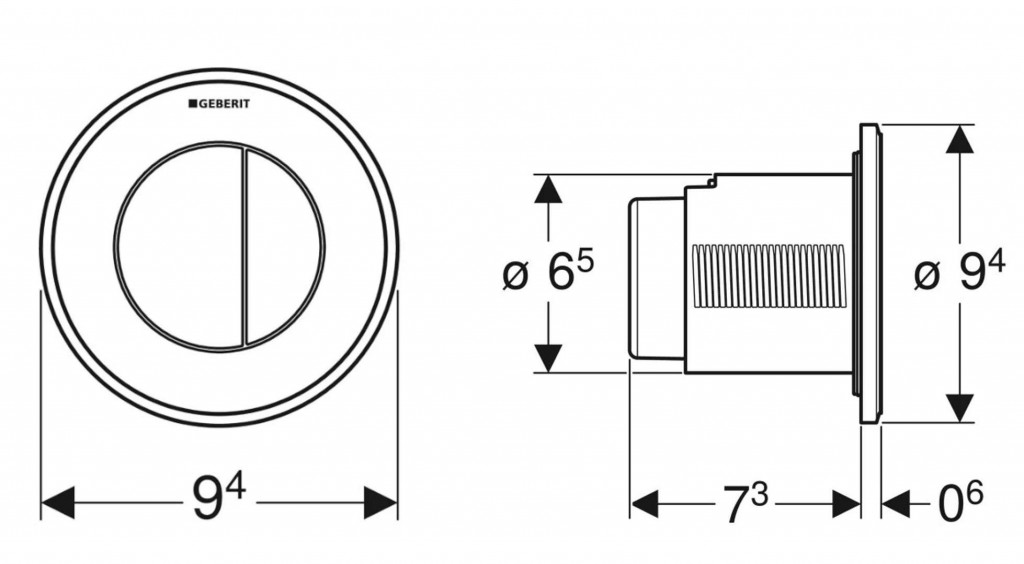 - kombinovateľný s ovládacími tlačidlami Geberit pre 1 množstvo splachovania a splachovania Štart/Stop alebo krycou doskou Geberit