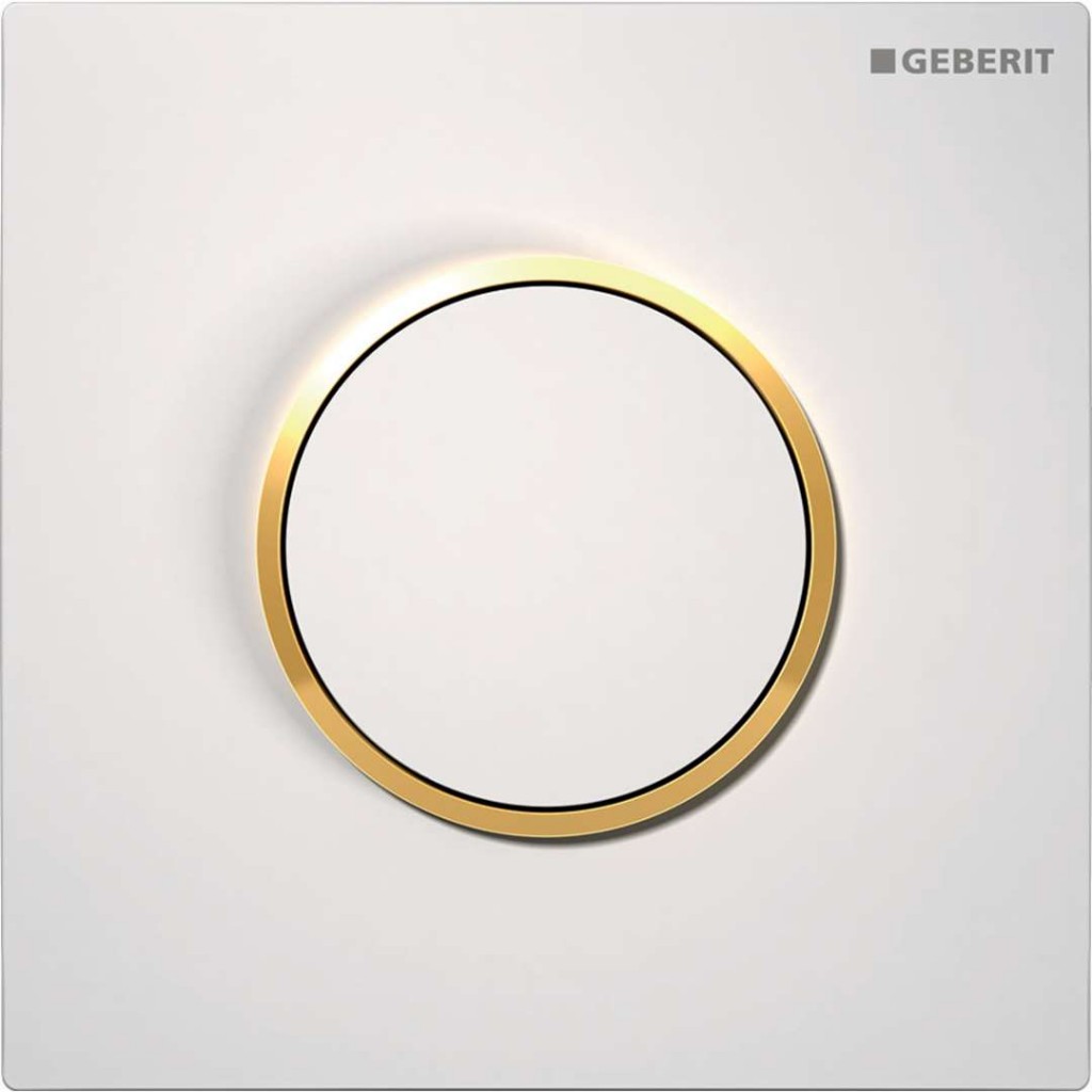 - ovládacie tlačidlo typ 10, plast, farba biela, dizajnový krúžok pozlátený