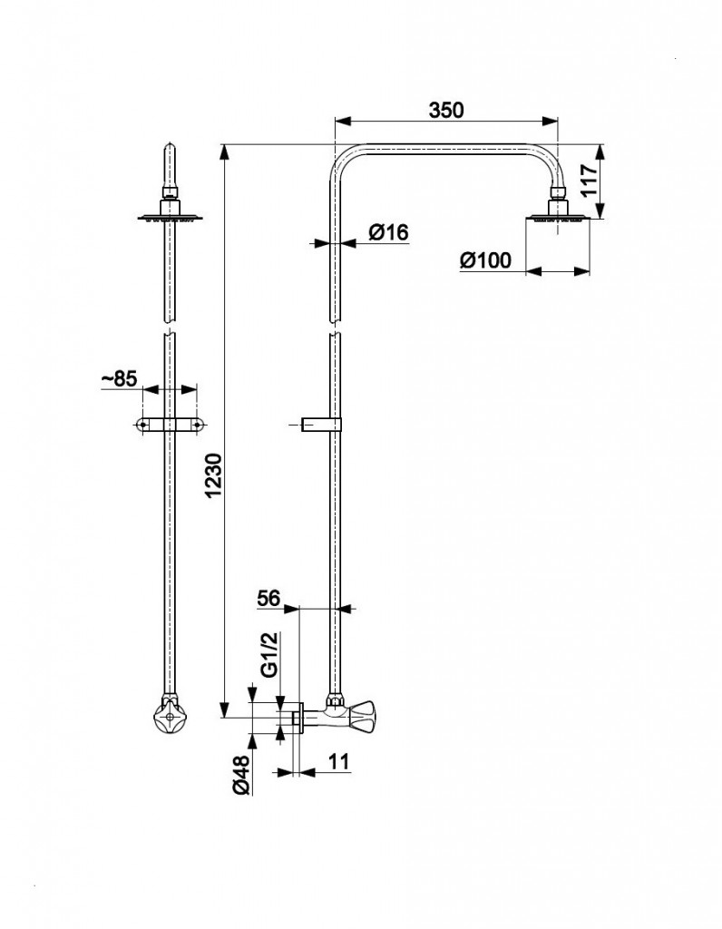 Vypúšťací ventil sérieSTANDARD s tyčou a pevnou sprchou.