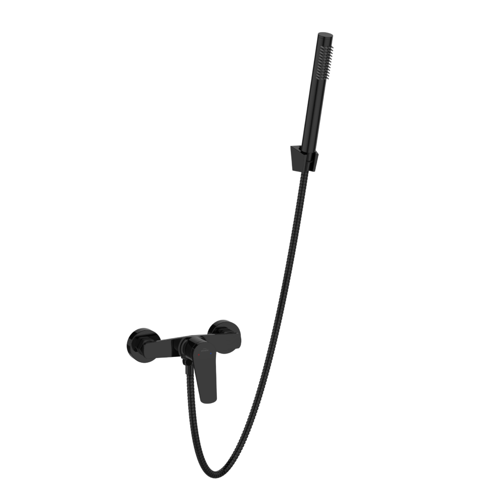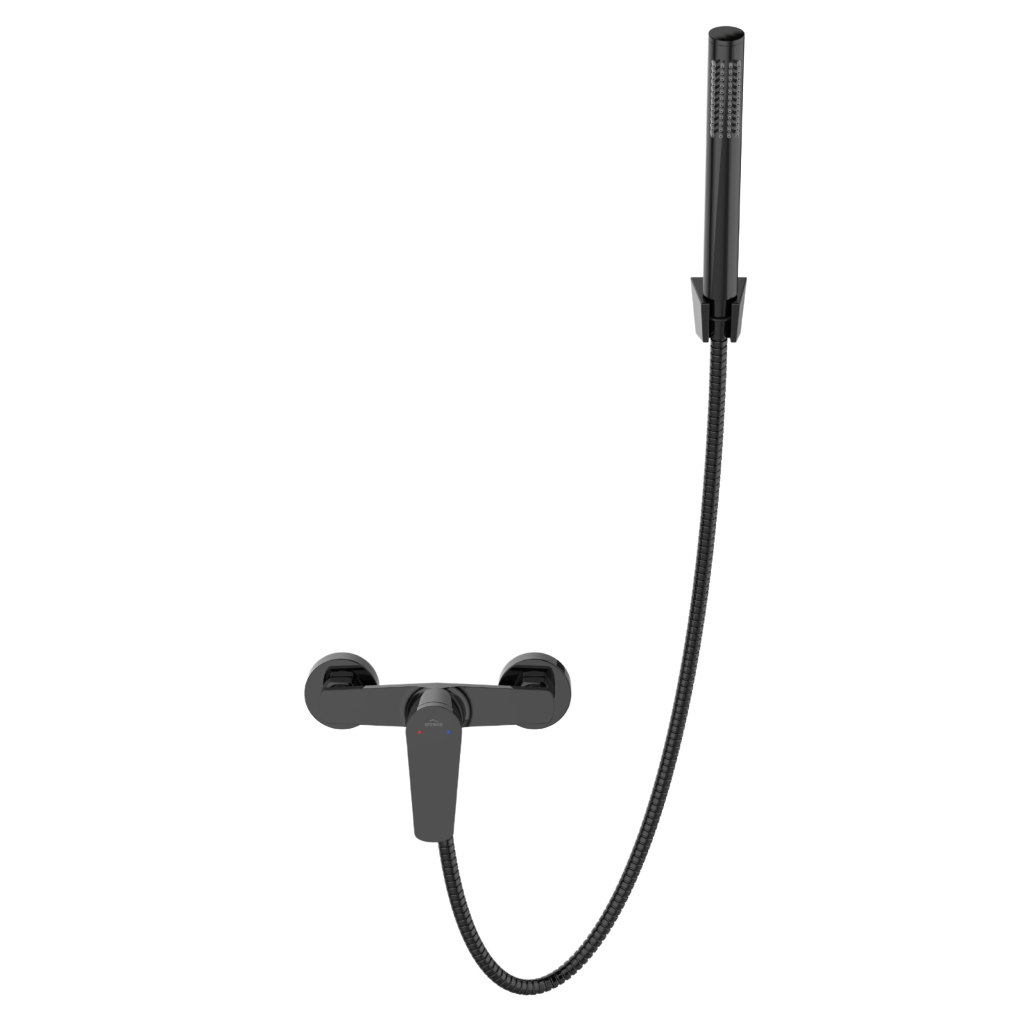 Lesklá sprchová batéria ALONIA v čiernej farbe je štýlovým doplnkom každej modernej kúpeľne. Jej pákový nástenný dizajn umožňuje intuitívne ovládanie prietoku a teploty vody, zatiaľ čo 35mm keramická batéria zaisťuje dlhotrvajúci výkon. Sada obsahuje 2,5 cm ručnú sprchu z nerezovej ocele s anti-calc systémom, ktorý minimalizuje usadzovanie vodného kameňa. Pevná rukoväť a 150cm dvojito opletená oceľová sprchová hadica zaisťujú pohodlie a funkčnosť. Batéria ALONIA je dokonalou kombináciou elegantného dizajnu a praktických riešení, vďaka ktorým je sprchovanie skutočným potešením.