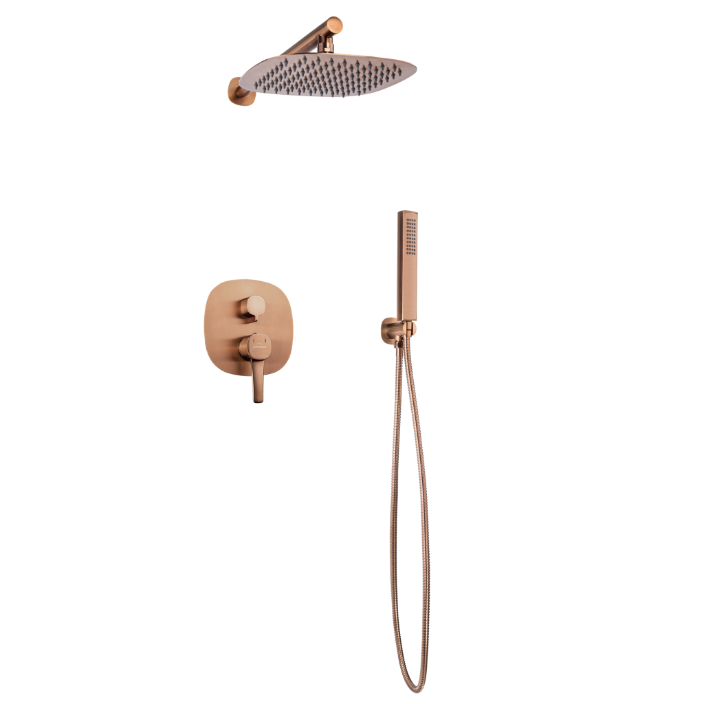 Ide o ďalší prvok špičkovej kolekcie kúpeľňových batérií Glamour v inšpiratívnej medenej farbe. Sada obsahuje: hornú štvorcovú dažďovú sprchu, sprchové rameno, 2funkčnú sprchovú batériu, 1funkčnú sprchovú hlavicu, sprchovú hadicu a uhlovú spojku s rukoväťou. Takto pripravená zostava splní očakávania aj tých najnáročnejších užívateľov bez ohľadu na to, či sa jedná o rýchlu rannú sprchu alebo večernú náhradu domáceho SPA. Celé sa to nesie v teplých medených tónoch a doplní chladnejší aranžmán v loftovom alebo industriálnom štýle. Tento model má PVD povlak, ktorý je tiež odolnejší proti poškriabaniu a poškodeniu. Spôsob jeho aplikácie je ekologickejší.