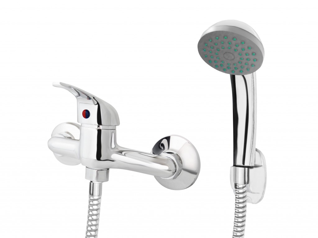 Sprchová batéria s príslušenstvom EOS -12 / C. Klasická vodovodné batérie do sprchy s príslušenstvom - sprchová hadica, ružica a držiak sprchy. Konštrukcia sprchové batérie je nástenná, hodí sa tak pre každé riešenie sprchových kútov i výklenkov. Výhodou je príslušenstvo v jednotnom dizajne.