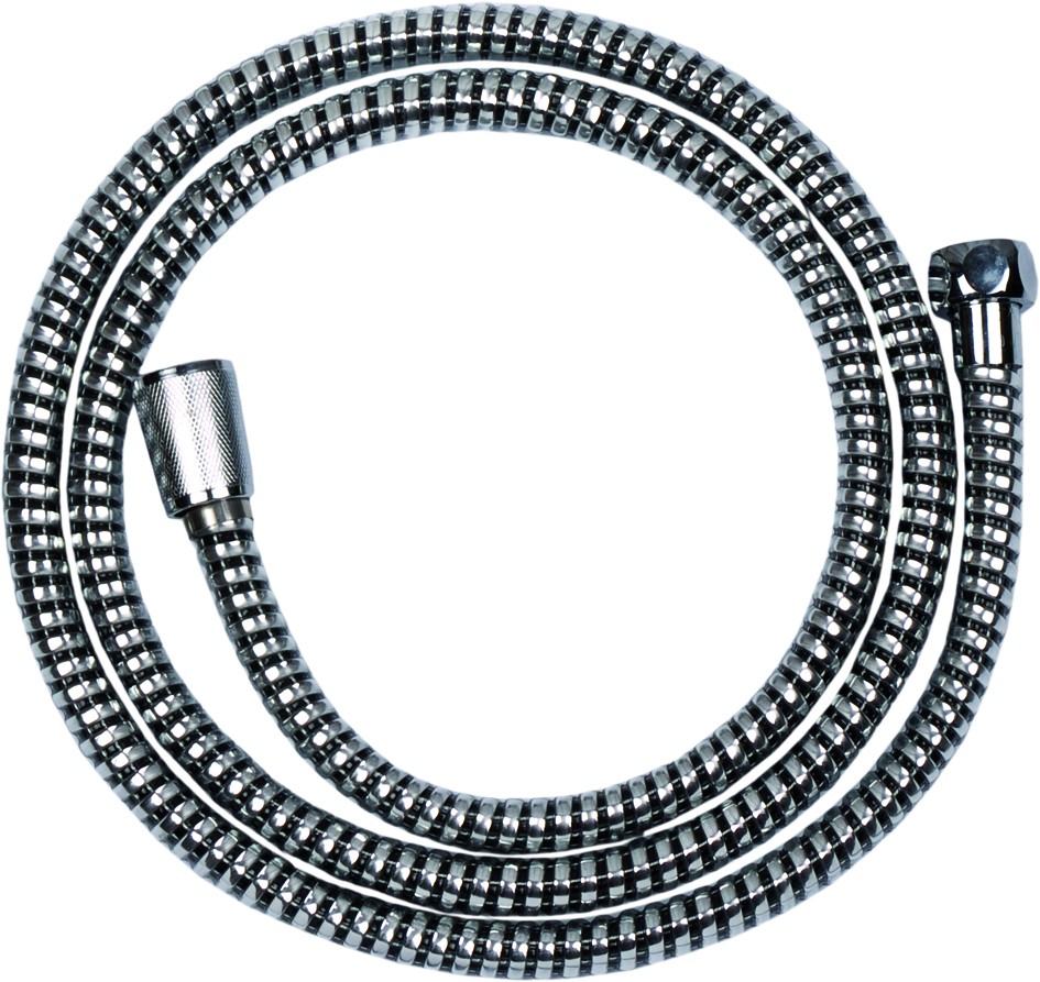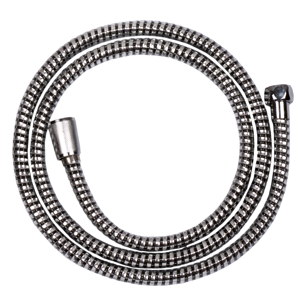 Dvojfarebná plastová sprchová hadica chróm / čierna s otočným konektorom zabraňujúcim prekrúteniu hadice.