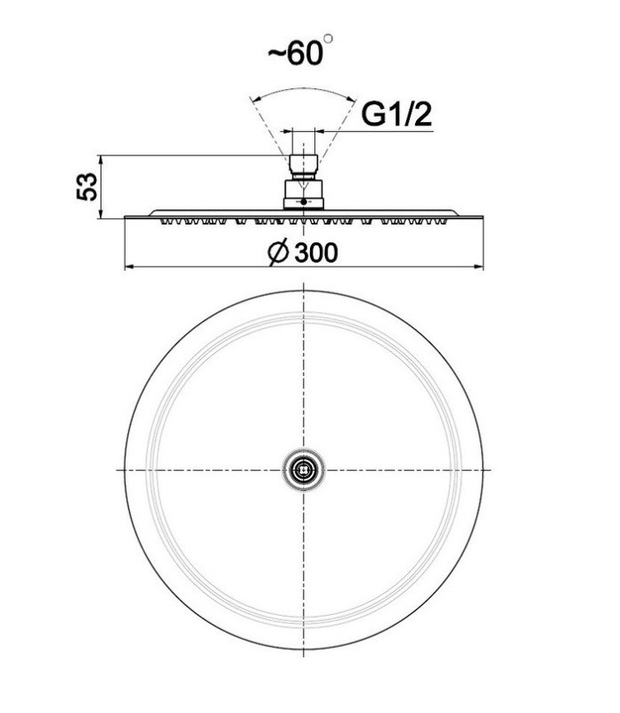 Hlavová dažďová sprcha je vyrobená z mosadze a jej veľkosť je s priemerom 300 mm. Výhodou je kĺbové pripojenie, kedy je možné prúd nasmerovať zvoleným smerom. Vybavená je systémom Easy Clean pre ľahké čistenie.