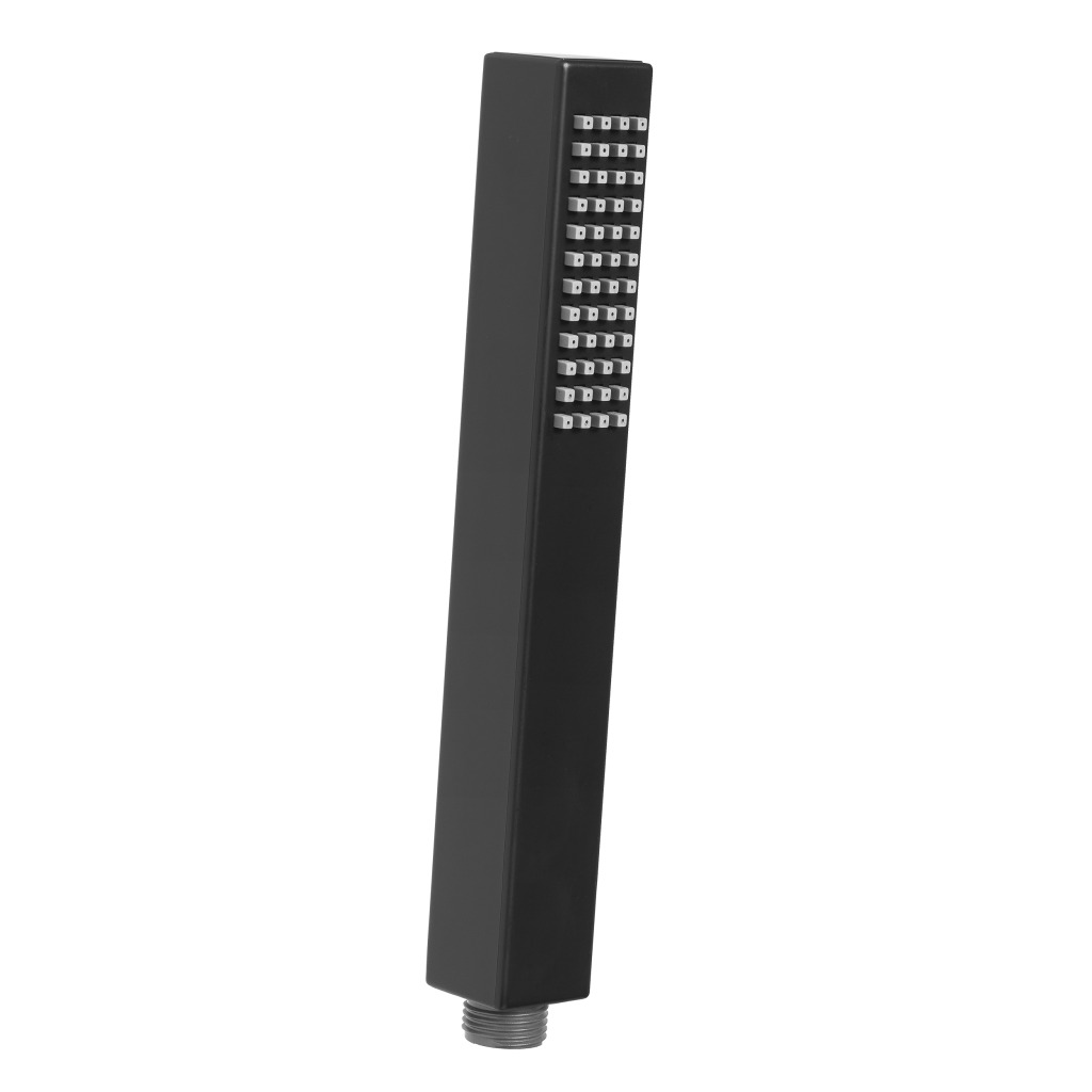 Moderná, kubistická ručná sprcha Svart je v čiernej matnej farbe.