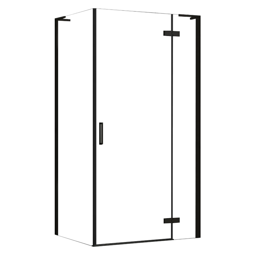 Rohový sprchovací kút HUGO s krídlovými dverami a pevnou bočnou stenou je vhodný na montáž na vaničku alebo priamo na podlahu.