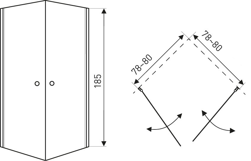 - výška 185 cm, šírka 80x80 cm (nastaviteľná šírka na profile o 2 cm)