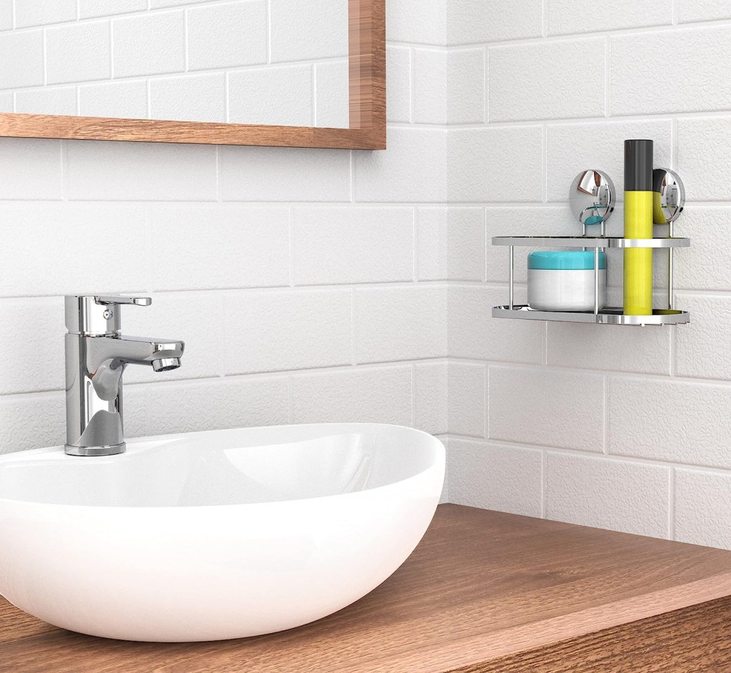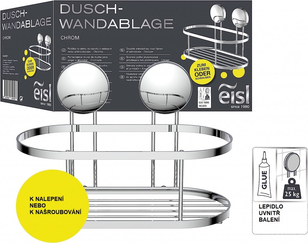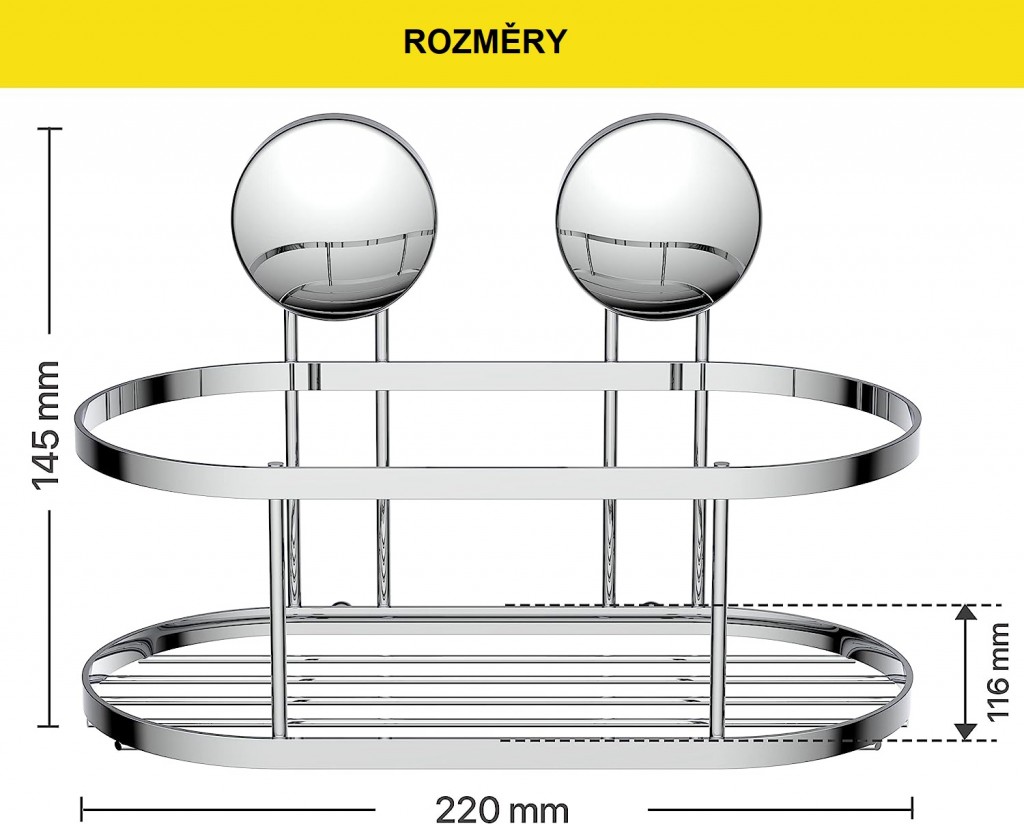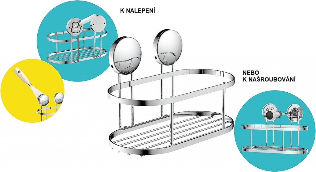 Sprchová nástenná polica, chróm, na nalepenie alebo priskrutkovanie